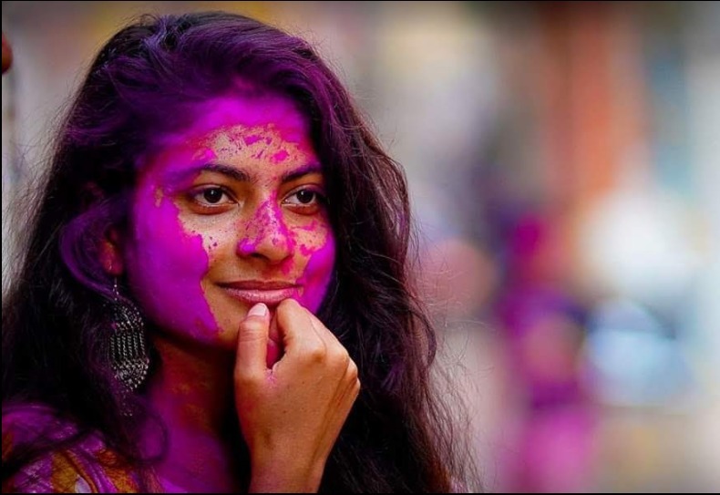 girl indian bokeh smiling earring blackhair holi lady